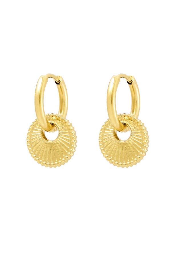 Wauw! Hoe leuk zijn deze bedeloorbellen. Super trendy en mega leuk te combineren met matchende sieraden en accessoires. De oorbellen zijn gemaakt van stainless steel en hebben een afmeting van 2 cm.