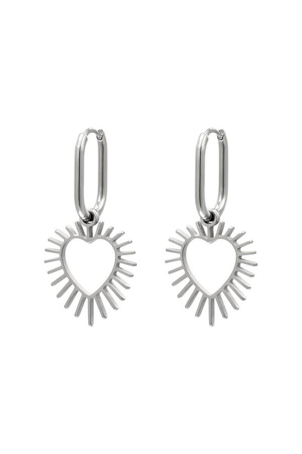 Roestvrijstalen oorbellen met ringen in de vorm van een vierkant. De bedel heeft een hartvorm die een stralend effect heeft!