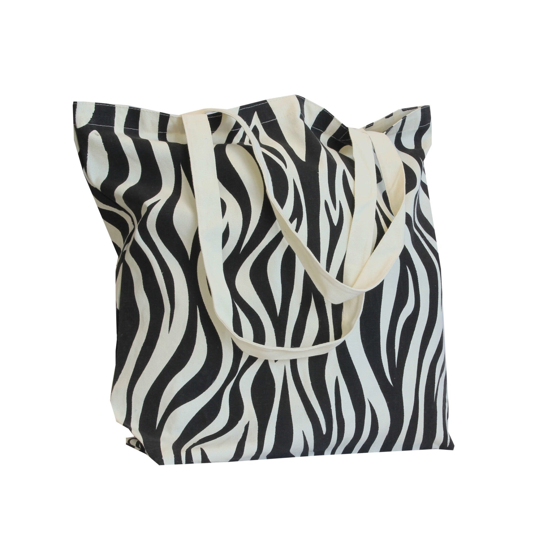 Een tote bag houdt in dat de tas wel een vouwbodem (in dit geval dus 14 cm) maar geen zijkanten heeft. Hierdoor krijgt de tas als deze volgepropt is een leuke buidelvorm. De tote bag is gemaakt van stevig 280 grams canvas en heeft lange draaghengels van 80cm. Maar wat echt opvalt aan deze shopper is de mooie grafische print die doorloopt tot op de bodem en een klein stukje op de omgeslagen top van de tas.