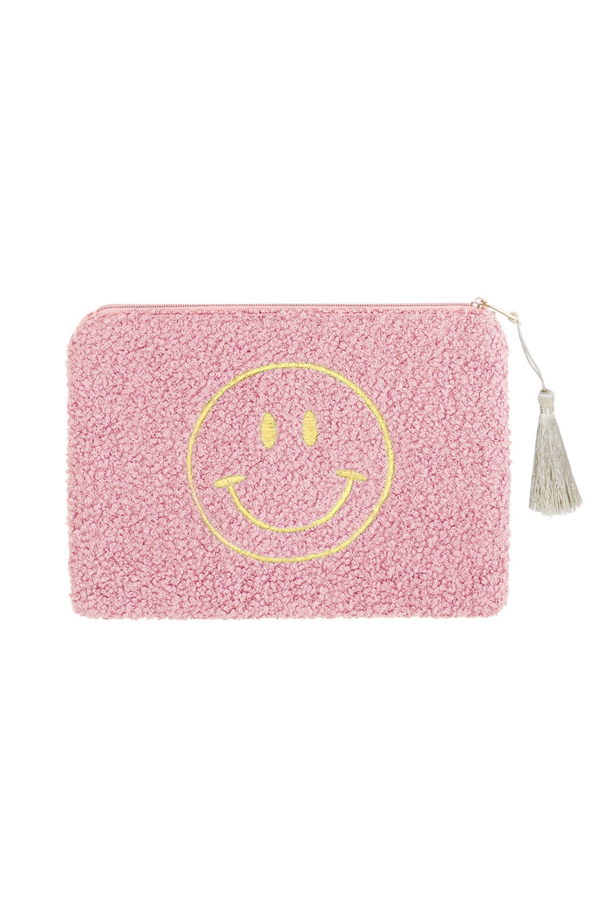 Hoe schattig is deze make-up tas met gouden smiley? Al jouw essentials passen in deze make-up tas. De tas is gemaakt van polyester en heeft de volgende afmetingen: 16 x 22 centimeter.