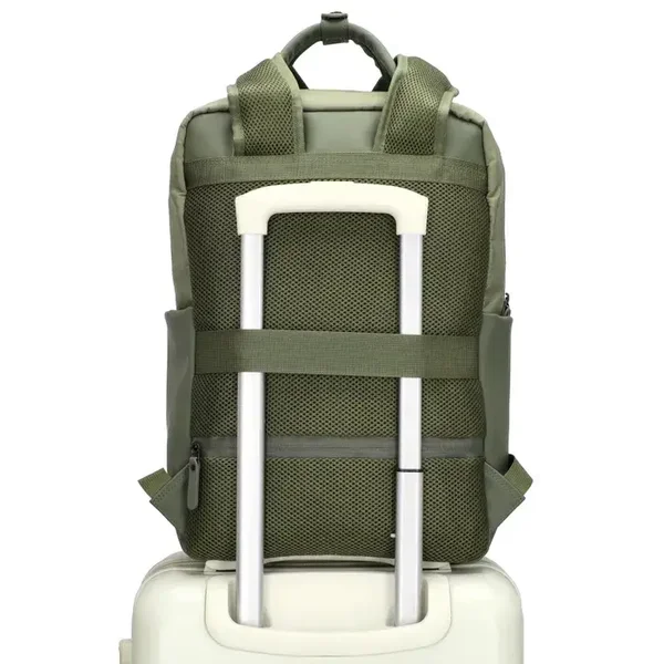 Met de trolleysleeve aan de achterkant kun je de tas eenvoudig op een koffer bevestigen, ideaal voor reizen. De neutrale kleur en het strakke ontwerp maken deze rugzak geschikt voor iedere gelegenheid, terwijl het praktische design zorgt voor comfort en gemak tijdens het dragen.