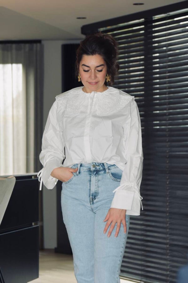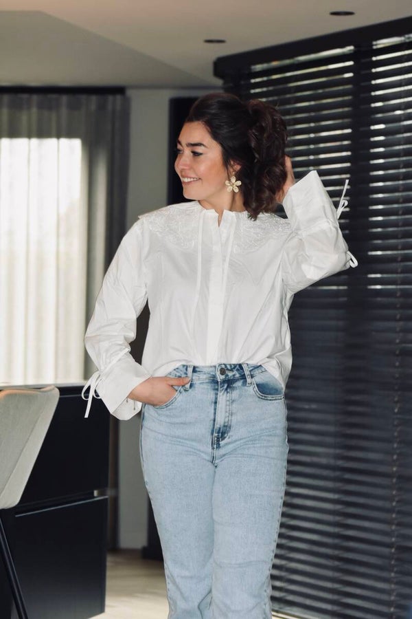 Blouse dubbele kraag wit