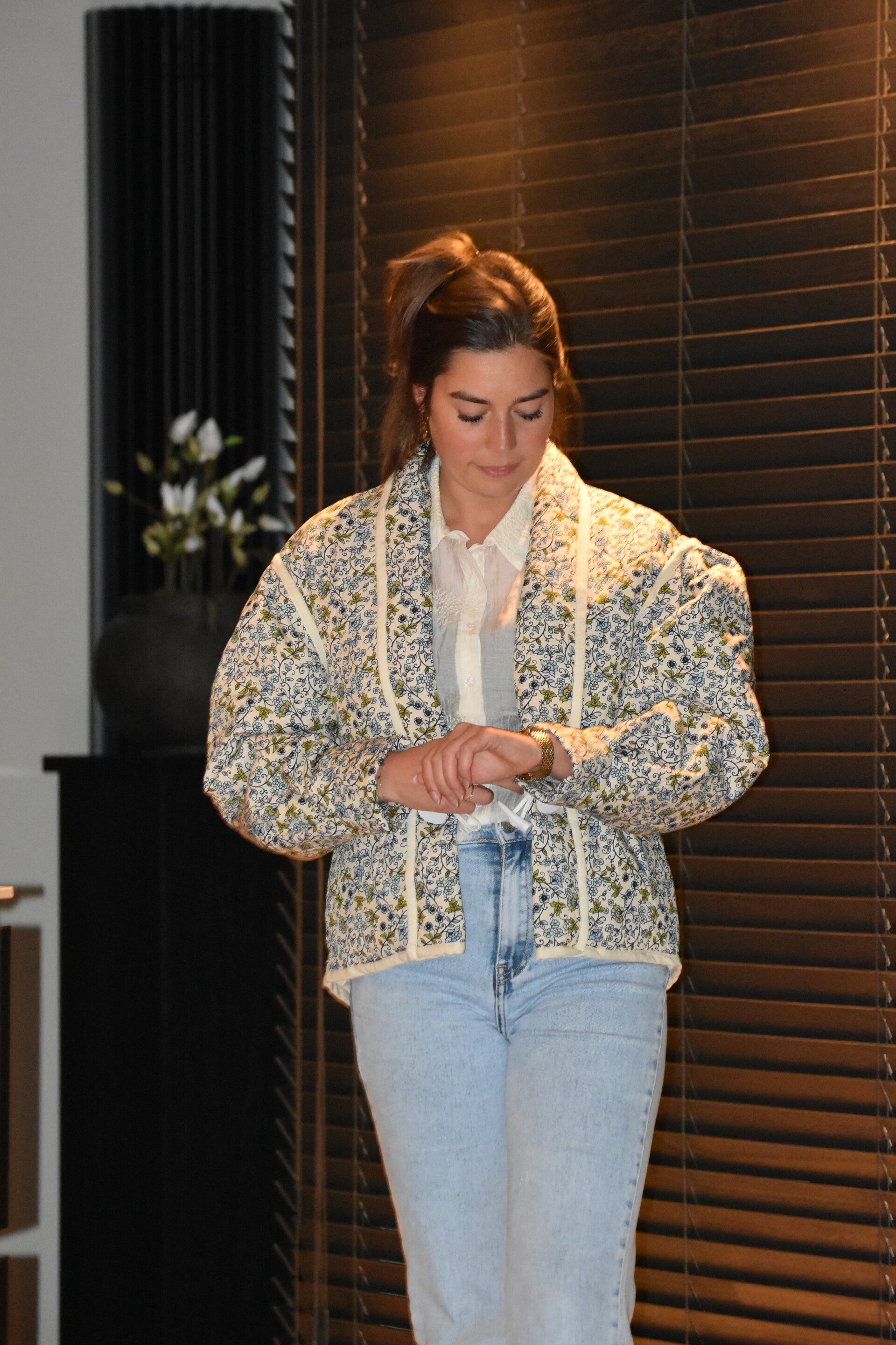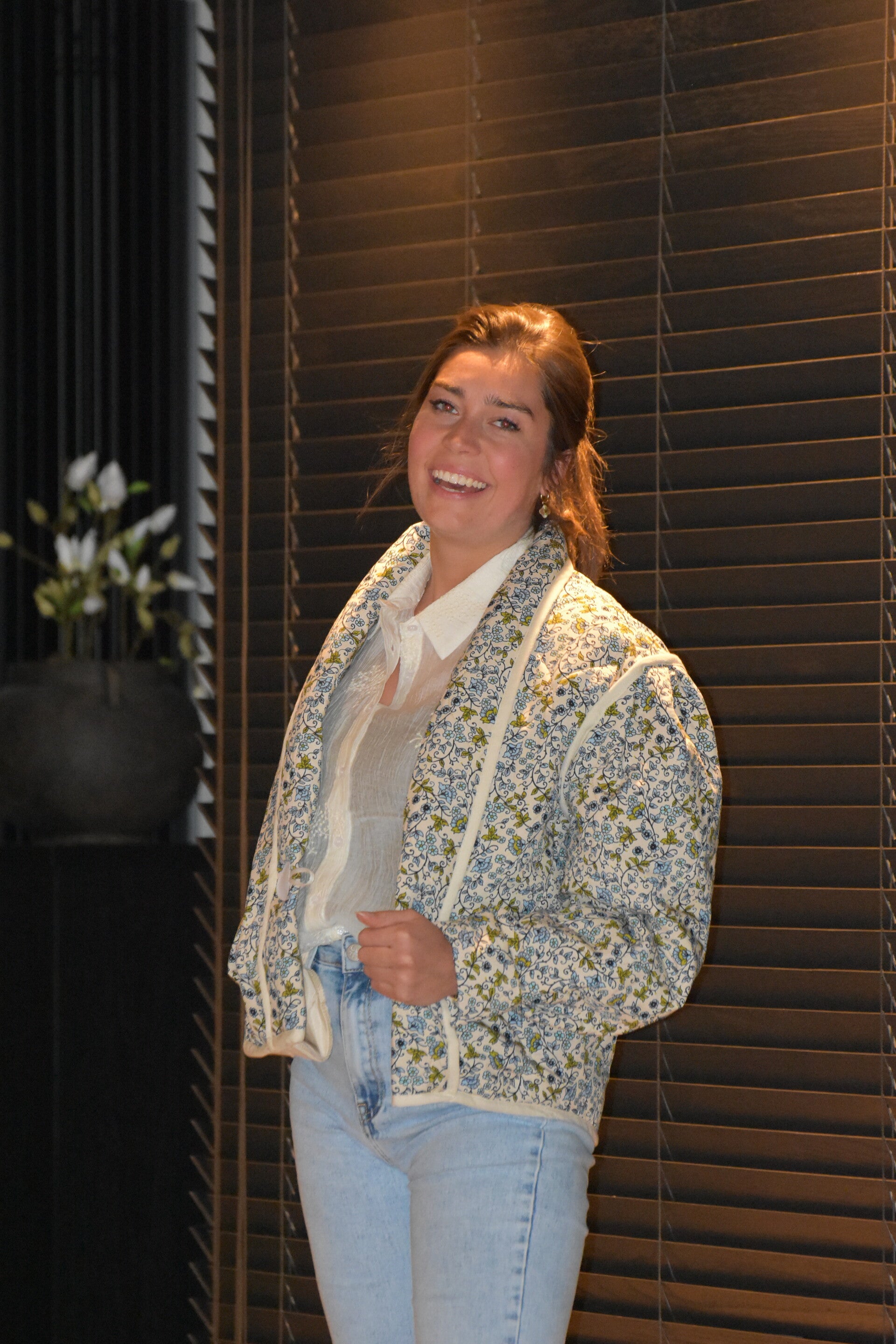 Deze gewatteerde jas met een prachtige blauwe bloemen tint is de perfecte combinatie van stijl, comfort en functionaliteit. Of je nu de stad in gaat of een wandeling maakt, deze jack houdt je lekker warm.