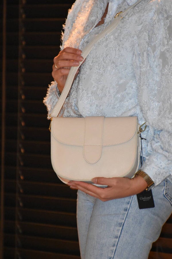 Mooie lederen schoudertas met een klep en magneetsluiting. De schouderband is verstelbaar en afneembaar.