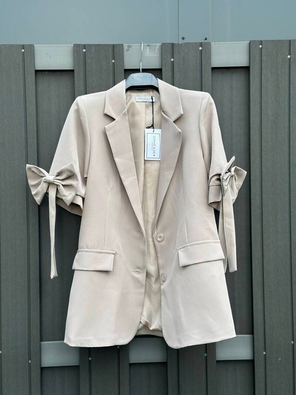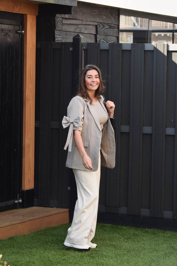 Op zoek naar een unieke blazer die klasse en stijl uitstraalt? Deze prachtige blazer met strikdetails op de mouwen is een echte eyecatcher! De elegante pasvorm en subtiele kleur maken het een perfecte keuze voor zowel een casual als chique look.