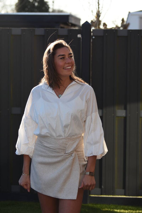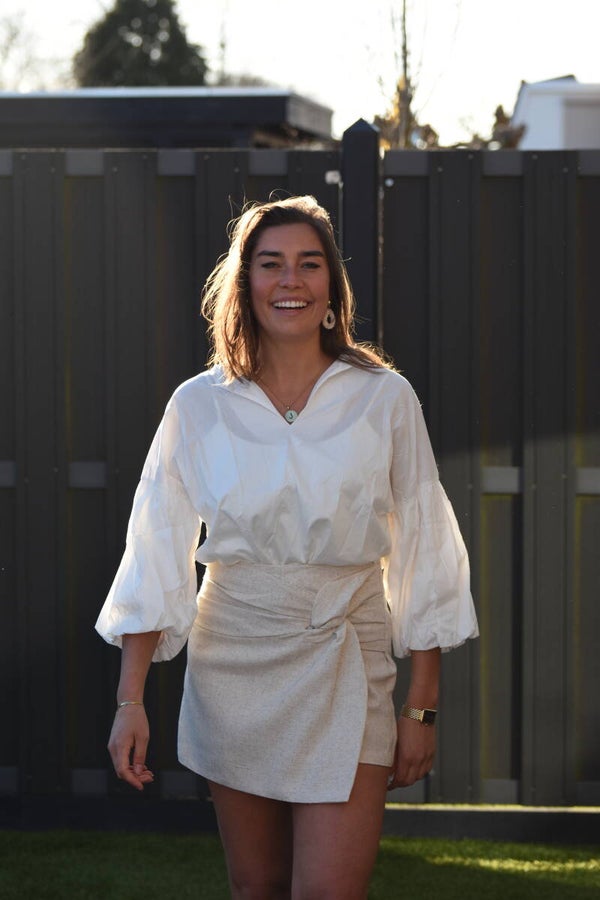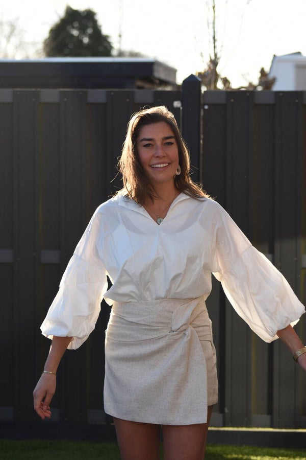 Deze prachtige witte top met speelse pofmouwen is dé must-have voor een elegante en moeiteloos chique look! Perfect te combineren met een rok of jeans voor elke gelegenheid. ✨