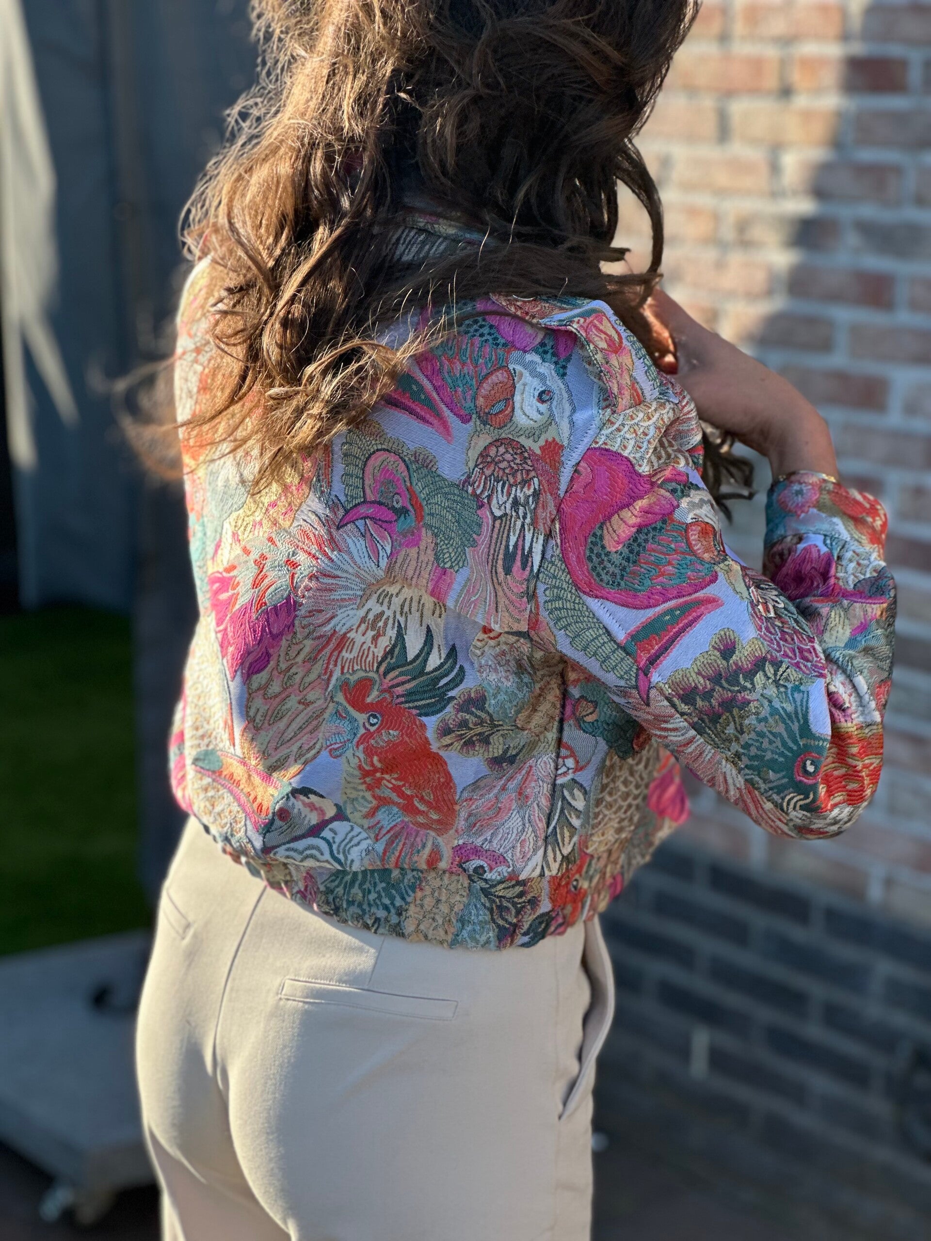 Wauw! Deze prachtige bomber jack print is de perfecte mix van kleur en stijl! Wij zijn er helemaal weg van! 🩷✨