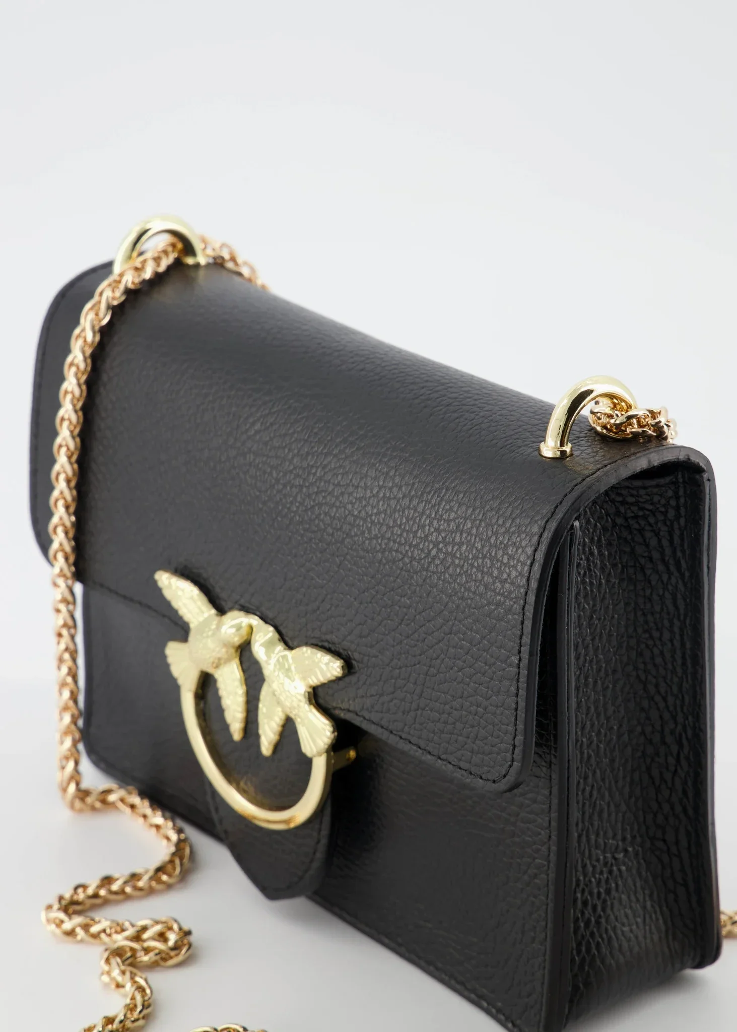 Leren crossbodytas met een bird buckle en magneetsluiting. De tas heeft een binnenvak en een klein binnenvakje. De Paisley tas heeft een lang ketting hengsel.