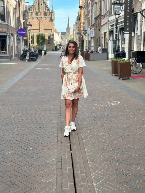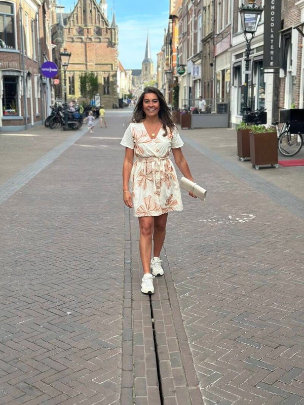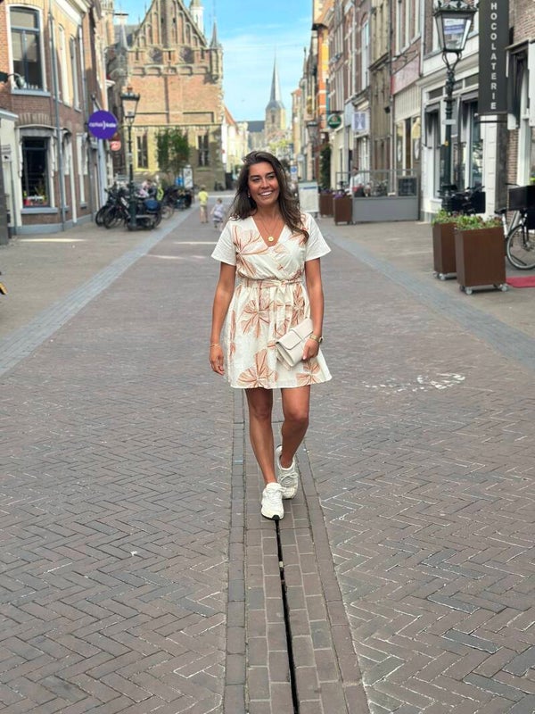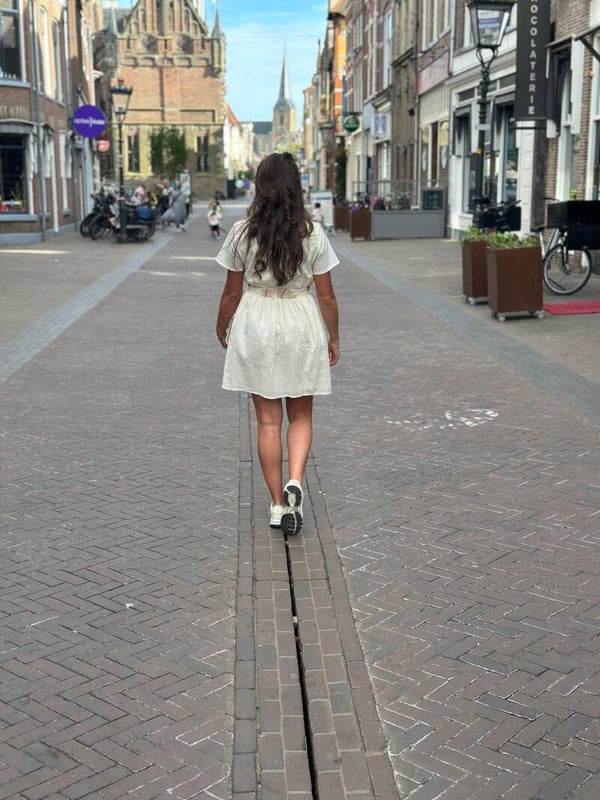Een prachtig linnen jurkje! 🤎 Je kan het jurkje strikken aan de voorkant, maar ook aan de achterkant.