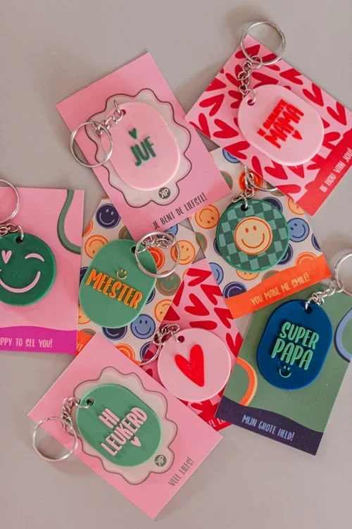 Een persoonlijk bedankje voor de juf die het verschil maakt. Deze ovale PVC-sleutelhanger in zachte roze tint met groene opdruk ‘Juf’ is het perfecte cadeautje om waardering te tonen. Ideaal voor het einde van het schooljaar, de Dag van de Leraar of gewoon als lieve verrassing. Een mooie, persoonlijke sleutelhanger voor aan haar sleutelbos of tas.